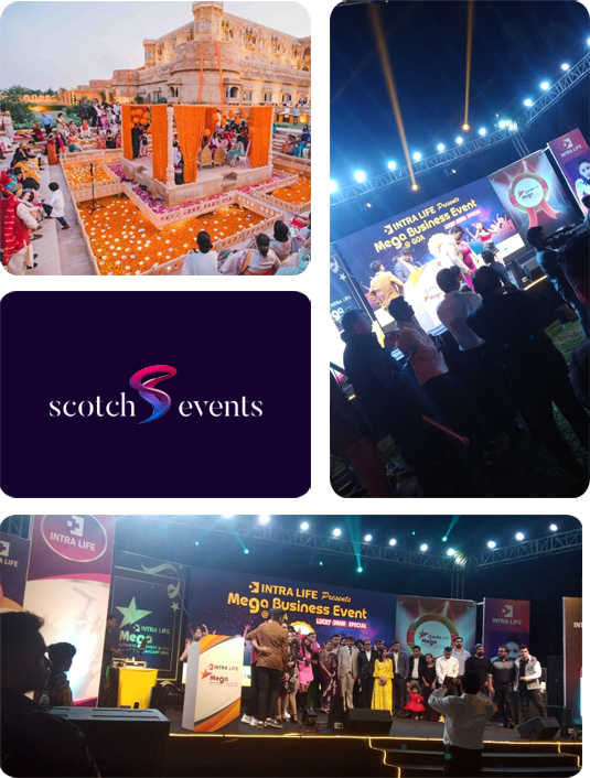 We also diversify our expertise into various verticals like ad films and television, destination wedding planner, corporates events, launching and promotions and tie-ups, ground activations, etc. Scotch Events has grown quickly within a short span of time and strives to make every association a memorable experience by infecting it with an energy that’s true to its name.
